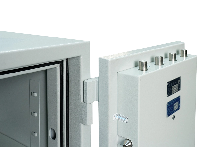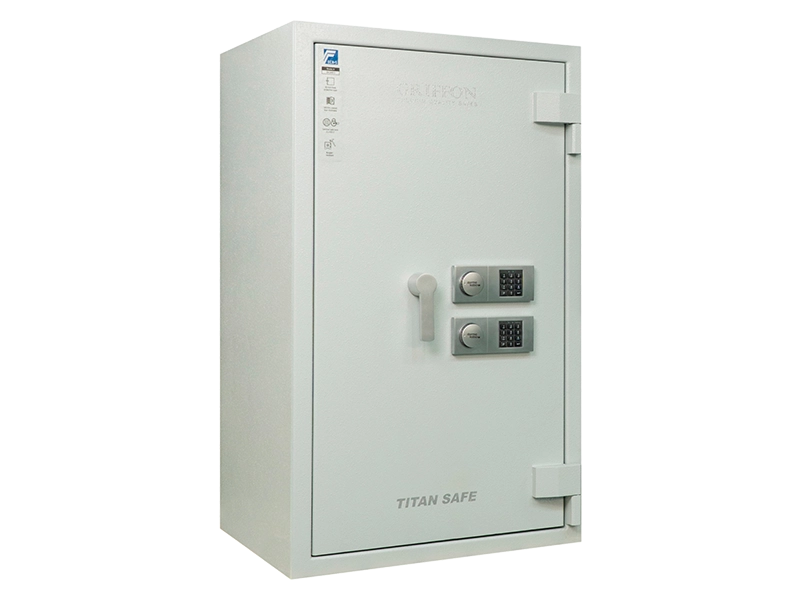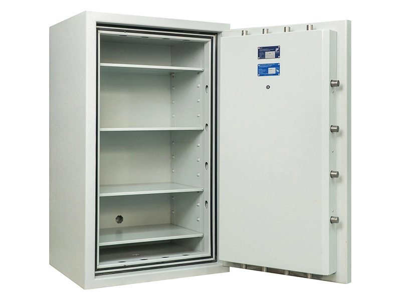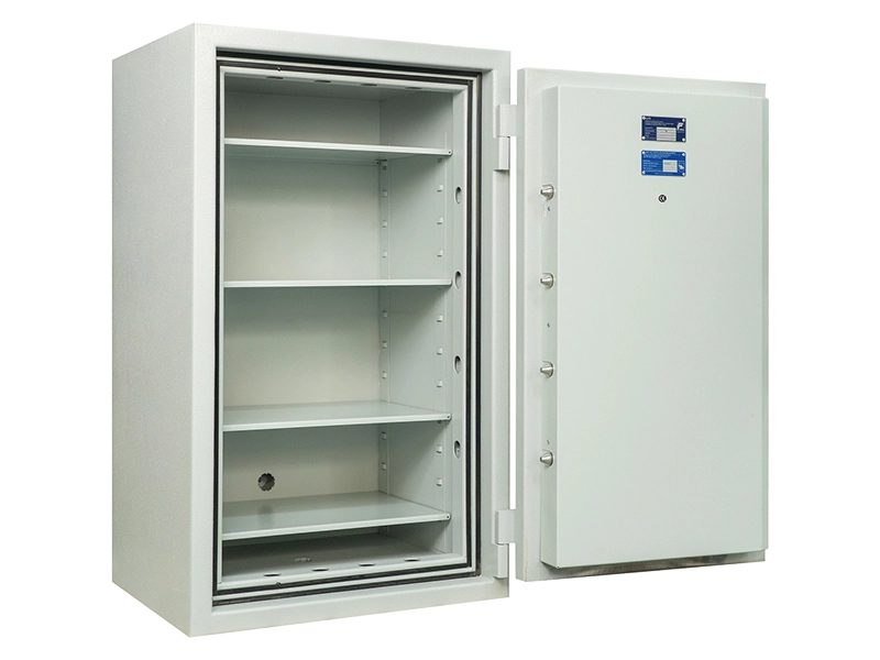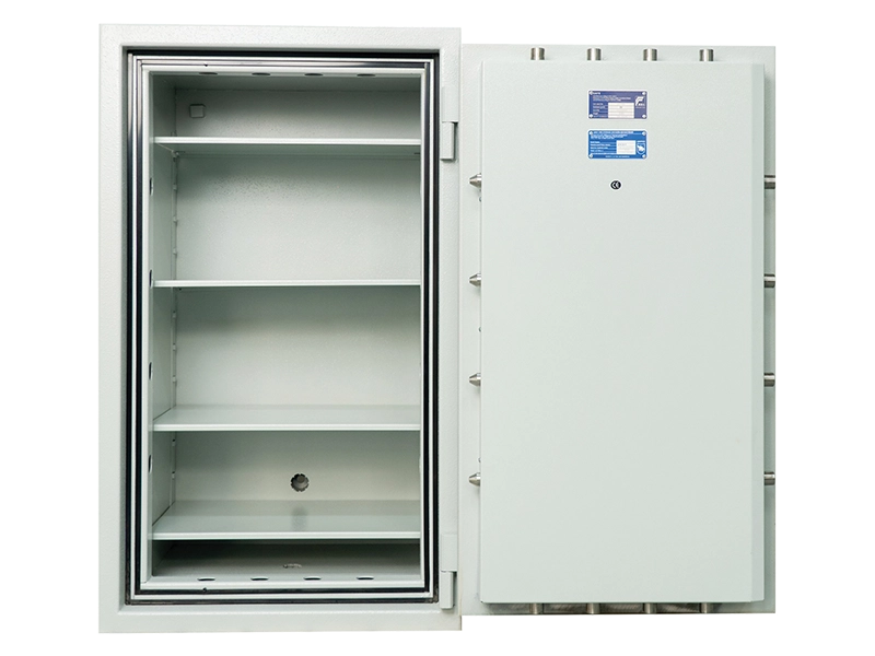 Debljina vrata i stijenki (s vatrootpornom i protuprovalnom, ojačanom cementnom ispunom): 60 mm što pruža poboljšanu otpornost na nasilne provale i provale uz pomoć alata. Sef je opremljen sustavom zaključavanja s tri strane: 12 rotirajućih kromiranih aktivnih zasuna, promjera 25 mm, sigurno zaključavaju vrata duž cijelog oboda.