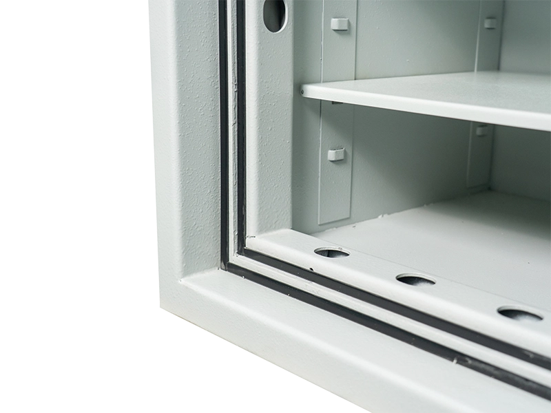 Unutrašnjost je opremljena policama za praktično pohranjivanje dokumenata A4 formata, fascikli, gotovine i drugih dragocjenosti. Sef je pripremljen za pričvršćivanje i na pod i na zid, što povećava otpornost na uklanjanje iz prostorija.