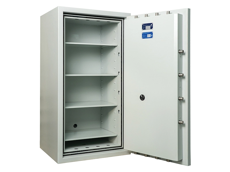Debljina vrata i stijenki (s vatrootpornom i protuprovalnom, ojačanom cementnom ispunom): 60 mm što pruža poboljšanu otpornost na nasilne provale i provale uz pomoć alata. Sef je opremljen sustavom zaključavanja s tri strane: 12 rotirajućih kromiranih aktivnih zasuna, promjera 25 mm, sigurno zaključavaju vrata duž cijelog oboda.